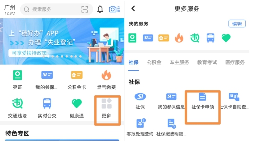 1.用手机下载“穗好办”APP,实名认证后选择“更多”---“社保”---“社保卡申领”中即可查询。
